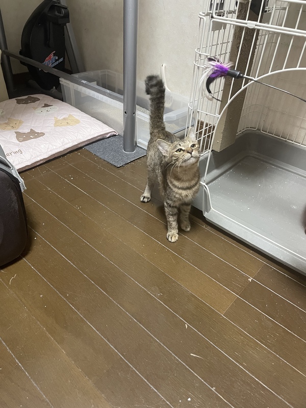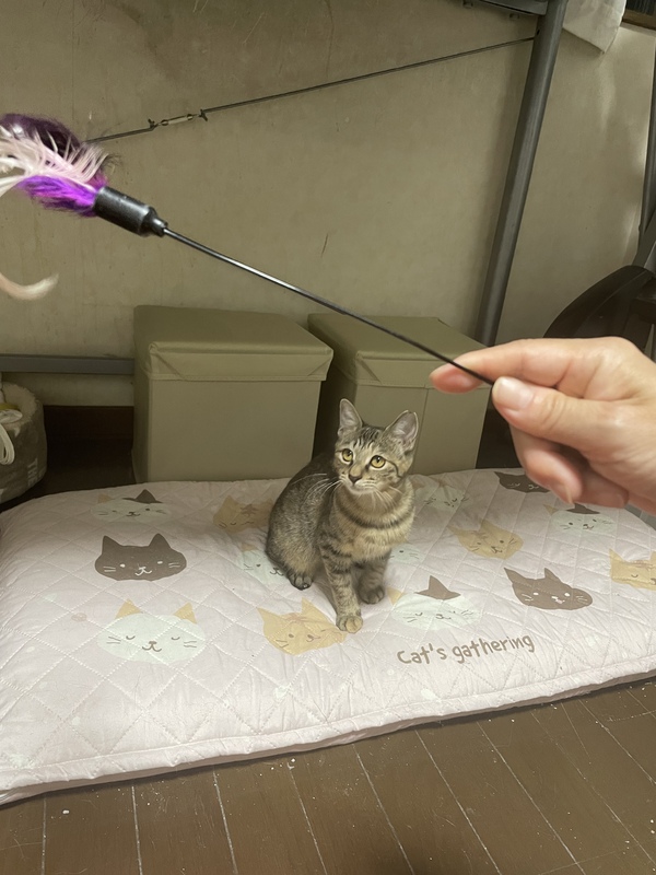 | 特徴(性格など) | 慎重な性格ですが、猫じゃらしやおもちゃで遊ぶのが大好きなムギキジの女の子です。 鍵しっぽとおひげもキジ模様なところもチャームポイントです! |