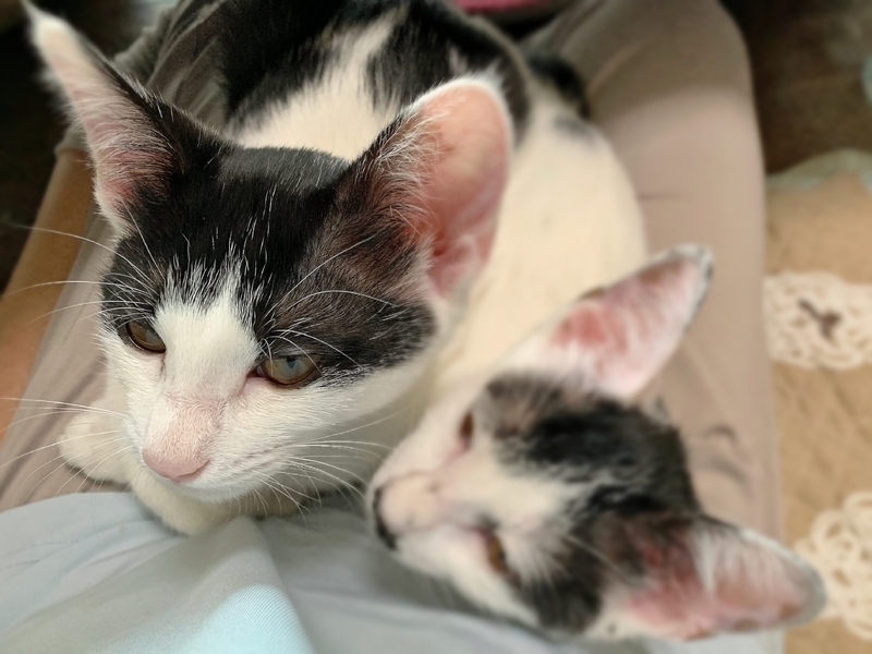 | 特徴(性格など) | 愛称:パンちゃん 性別:女の子 推定:2023年4月末生まれ 【健康状態(8月初旬現在)】 混合ワクチン:注射済み (一回目:8月8日)(二回目:9月15日) 検便 :二回済み、異常無し 耳ダニ :無し 白血病、 免疫検査:母猫陰性の為していません その他 :便の臭いがきつめ(整腸剤で様子見中) 【性格や特徴】 甘えん坊で膝の上が大好き。 よく泣きます。 前髪のような模様とクリクリおめめ、ピンクのお鼻とねじ巻きしっぽが特徴。 ポポちゃんの姉妹猫です。 |