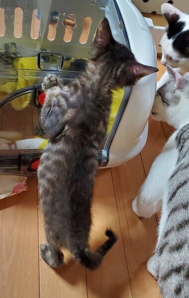 | 特徴(性格など) | ◆アヤピコンくん 遊ぶことが大好きなわんぱく坊主 ●月齢の小さな子猫は、以下の条件についてご了承の上で応募をご検討下さい。 ◆お留守番の少ないご家族を希望します。 ◆2匹でお迎えくださるご家族を優先いたします。 ◆小さなお子様のいるご家庭は状況によりお断りする場合がございます。 ◆高齢者のみのご家族からの子猫のお申し込みはお受けしていません。 ○神奈川県綾瀬市内にて、生後間もない乳のみ子のときに保護されました。 ○生後2ヶ月半くらい(2023年8月下旬時点)のキジトラの男の子です。 ○尻尾は長めで、先だけ曲がっています。 ○人懐っこく、好奇心旺盛なわんぱく坊主。 ○遊ぶことが大好き。1人遊びも得意ですが、兄ちゃん猫たちと遊んでるほうが楽しそうです。 ○兄ちゃん猫たちから色々学びながら、元気に成長中です。 ○まだ小さな子猫ですので、一緒に遊んでくれる子がいるお家が希望です。 ★ワクチン1回済み。 ★猫エイズ、猫白血病ともに陰性。 ★不妊手術は成長と体調を見て実施予定です。 ○YouTubeにも動画を上げています。こちらもご覧下さい。 「アヤピコン」その1 https://youtu.be/rMPJ60oArA4 「アヤピコン」その2 https://youtu.be/n3WlUrRmhq4 ☆★☆★☆★☆★☆★☆★☆★☆★☆★☆★☆ 8月27日(日)荏田にて譲渡会開催! ◎場所・・「島忠 荏田店」 神奈川県横浜市青葉区荏田西1ー3ー14 田園都市線「江田」駅より徒歩約7分 246号線江田駅交差点そば ◎日程・・8月27日(日)(雨天決行) ◎時間・・13時から16時 【15時30分受付終了】 (会場に利用可能な無料駐車場がございます。そちらをご利用くださいませ。) *混雑状況により、中止させていただく場合がございます。 ※参加予定の犬猫は体調により参加できない場合があります。ご了承ください。 ☆★☆★☆★☆★☆★☆★☆★☆★☆★☆★☆ |