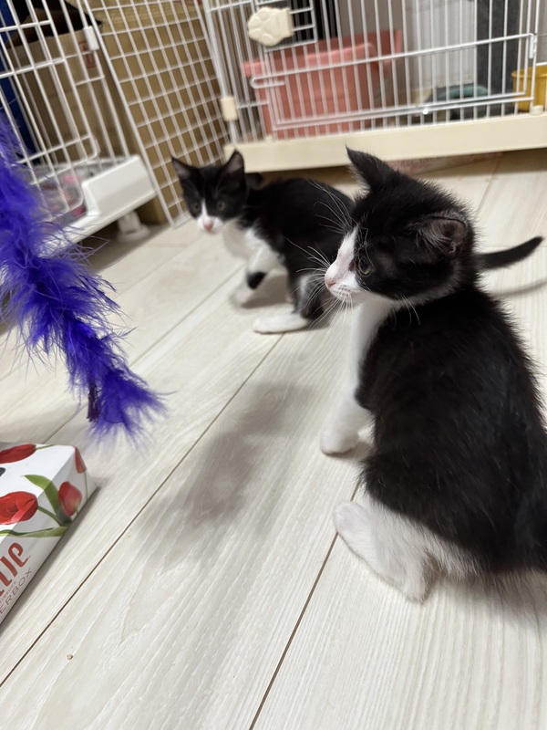 | 特徴(性格など) | 勢はとってもお転婆で、真逆の性格の良(りょう)が いつもドン引きしているほどです。 兄弟だからセットなのではなく 猫同士の社会期が今後の生活において すごく大切なことから この月齢の子猫は2匹・もしくは若い先住のいる方に お願いしたいと思います。 |