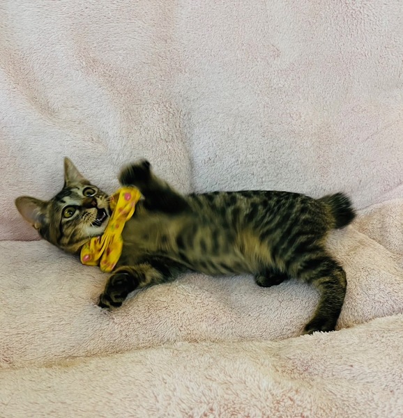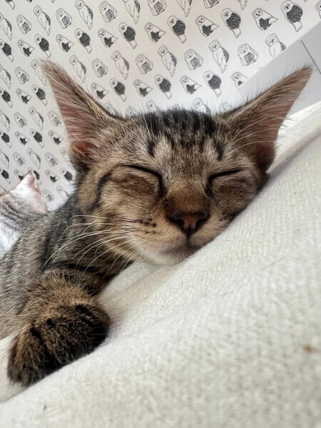 | 特徴(性格など) | 仮名:洋太(ようた) オモチャが大好きで遊び好き♡ そしてとってもよく寝ます。 兄弟の中ではアピールは控えめですが、人とピッタリくっついて寝ます。 健康状態 体重 1.05kg(8/22) ウイルス検査は未実施ですが、母猫は検査済、陰性でした。 保護当初はノミ・ダニ、耳ダニ、お腹の虫があって、痩せていました。 8/5にレボリューション塗布、コンベニア(抗生剤)注射。 8/13ドロンタール(駆虫薬)投与。 8/222回目のレボリューション塗布。 今後の医療措置 去勢手術 |