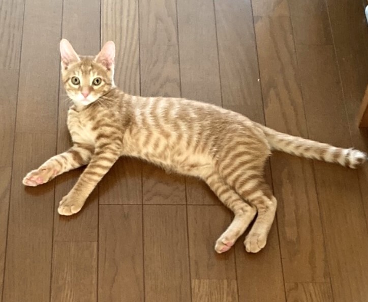 | 特徴(性格など) | 猫の仮名】 タオ 【毛色・柄】 茶トラ、長くてまっすぐなシッポ(担当 秋元) 鼻がピンクで可愛く、見ているだけでも癒されます。 性格がとても良い男の子で、兄弟猫にも親切です。 屋内で生まれているので、人にもとても慣れています。 被毛が短毛で手入れしやすい猫だと思います。 先住猫さんともすぐに仲良くなれると思います。 健康状態 良好 ●ウイルス検査(エイズ・白血病検査) 陰性 ●ワクチン 2回 ●蚤取り 1回 ●駆虫 2回 ●検便 2回 ●シャンプー 1回 |