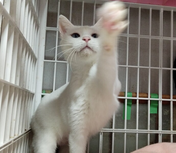 | 特徴(性格など) | 良好です エイズ陽性 白血病陰性 ノミダニ駆除済、検便済 エイズキャリアですが、発症もせず元気です 甘えん坊で可愛い真っ白な女の子です。 エイズキャリアですが、発症はしていません。元気です。 たくさんの猫たちがいるシェルターで生活しているので 発症させないためにも落ち着いたお家で生活させてあげたいです。 |