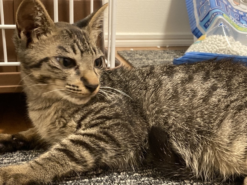 | 特徴(性格など) | 猫飼い初心者OK。先住猫のいるご家庭OK。 キジトラの男の子。 のんびりやでいつも控えめなタイプでも遊ぶ時は全力です。 甘えん坊なのでご家族に可愛がっていただけたらすぐに懐くと思います。 兄弟で保護しましたが毎日兄弟で仲良く遊んでいます。 |