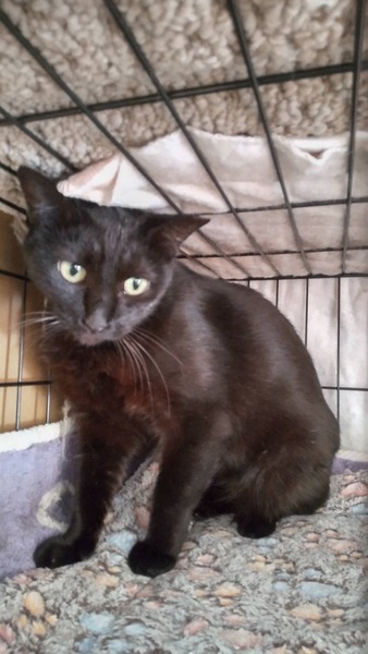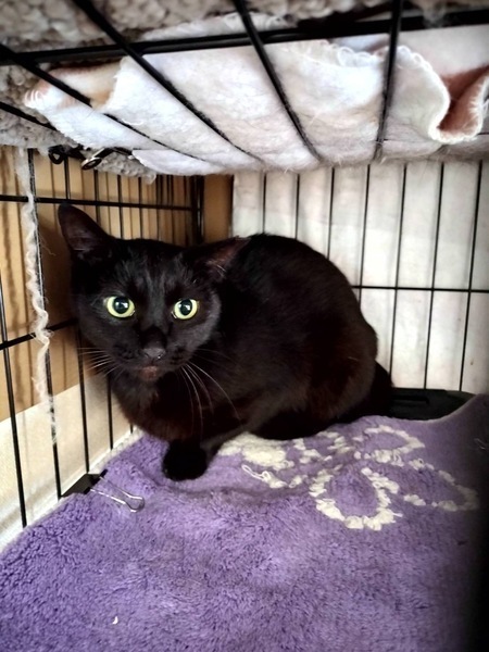 | 特徴(性格など) | 黒猫の小柄な女の子です。とても可愛らしい声で鳴きます。とても大人しい性格で怖がり屋さんですが人馴れ〇。撫でる事もできます。毎日一緒に過ごす内に懐いてくれると思います。猫との相性も良好で先住猫さんがいても大丈夫だと思います。是非一度会いに来て下さい。 猫エイズ(+) 白血病(-) 猫エイズ陽性のりんご猫です |