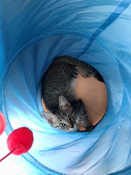 | 特徴(性格など) | 綺麗な長尻尾のキジ仔猫の男の子です。 とにかく食べる事より遊び。元気いっぱいに遊んでいます。 多頭の中で育ったためか他猫や人に対して友好的です。 人の生活の中で生まれたため、人に甘えてきます。 何をされても爪を立てずゴロゴロ喜びお腹をみせて寝そべる子です。 おもちゃで遊ぶの大好き、走り回るのも大好き、何かに登るのも好きなようです。 とってもヤンチャっ子です。 ただ今、人が留守中の時のためケージトレーニングしてます。 |