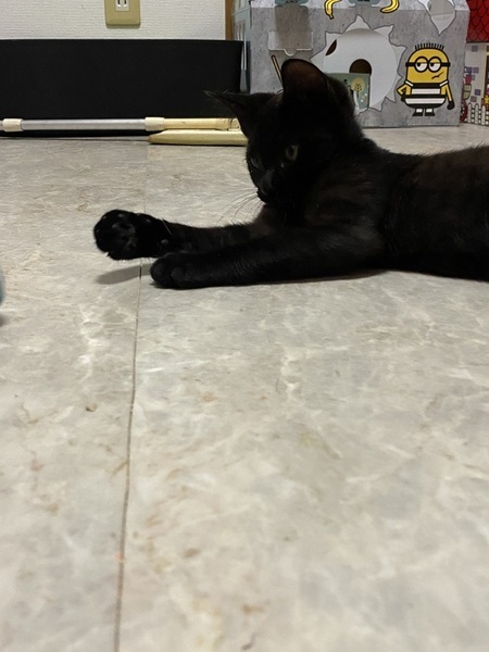 | 特徴(性格など) | 真っ黒な猫です。 駆虫済、血液検査エイズ 白血病 共に陰性 触れるし抱っこも出来ます。 鳴き声はほとんど聞いたことがありません。 よく遊びよく食べ元気いっぱい可愛い子です。 粗相は一度もなく、ちゃんとトイレで用を足します。 |