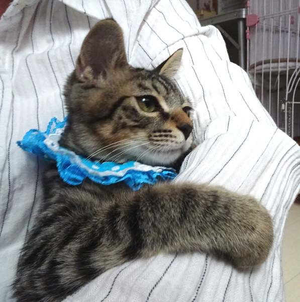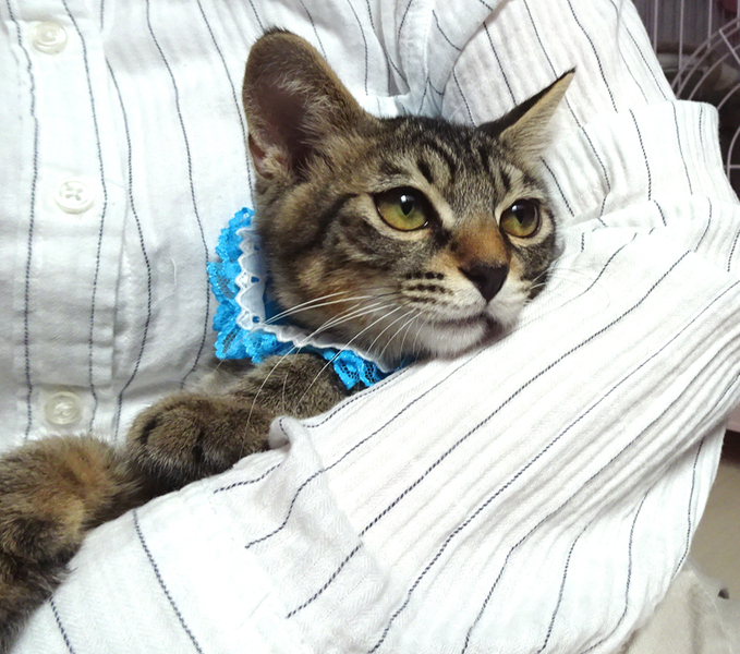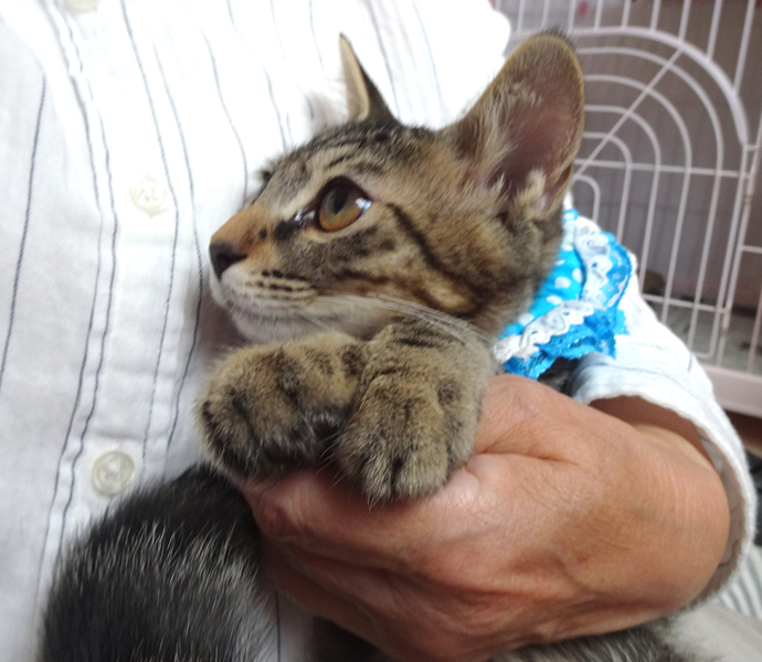 | 特徴(性格など) | 【猫の仮名】 レオンくん (担当 松嶋) 【毛色・柄】 キジトラ、長いシッポ きれいな顔のキジトラの男の子です♪ びびりですが慣れると抱っこされます♪ 健康状態良好 ●ウイルス検査(エイズ・白血病)陰性 ●ワクチン 2回 ●蚤取り 1回 ●駆虫 2回 ●検便 2回 ●シャンプー 2回 走っても大丈夫なペット可のお住まいで、家族の一員として生涯大切にして下さる方を募集しています。 猫仲間が好きなので先住猫ちゃんは大歓迎です。 |