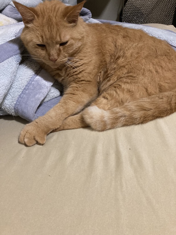 | 特徴(性格など) | 茶トラのこいしちゃん雄です 甘えん坊で体全体で擦り寄ってきておでこでコツコツんと甘えてきます。 体重7kgでそこそこ大きいですが愛嬌たっぷりです。 ちょっとおデブですが病気もなく健康です。 |