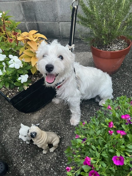 | 特徴(性格など) | 大変人懐っこいウエスとハイランドテリアの男の子 元気いっぱい明るく愛嬌いっぱいの子です 体重6キロ フィラリア 陰性 食欲もあり 健康です |