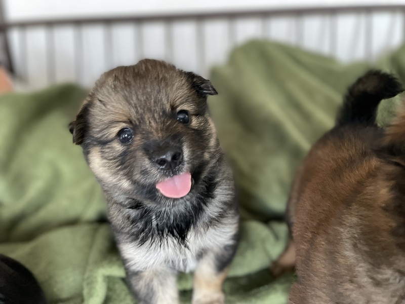 | 特徴(性格など) | 【仮名】すい 【生年月日】推定2023年7月13日頃生まれ 【種類】MIX 【成犬時サイズ】中型犬(13-20kg前後) 【毛色】ウルフ 【性別】オス 【去勢】適正時期になり次第飼い主さまで必ずお願い致します。 【混合ワクチン】生後2か月頃接種予定 【駆虫】8/111回目済み 【健康状態】良好。 【その他】ふわふわしていて毛が密集していて触り心地抜群です。 【性格】人見知りせず元気で自由な性格で、ものおじしません。 人が大好きでしっぽフリフリで後をついてきたり、足に絡みついてきます。 先住犬にちょっかいをだして、怒られたりとたくましく育っています。 水遊びが大好きでウォーターボウルに手を突っ込んでパシャパシャ遊んでいます。 【トイレ】かなりお利口で成功率が高いです。 【ケージ】就寝時はケージです。お昼のお留守番はドックルームです。リビングにフリーにしていても眠くなると自分からドックルームに戻って寝ます |
