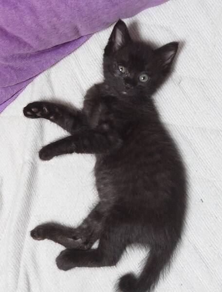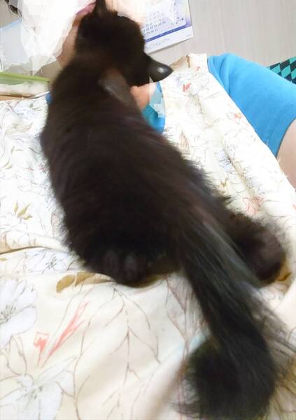 | 特徴(性格など) | 人慣れをしています 人間が大好きで甘えん坊さんです 全身黒毛の男の子です かぎしっぽを上に立てて、やんのかステップで走る姿に癒やされます ご飯を食べて眠くなると、私の手のひらを母猫のおっぱいを吸うようにチュッチュと吸ったり舐めたりします 首を通り越して顔までチュッチュと痛いほどキスをしてくれます |