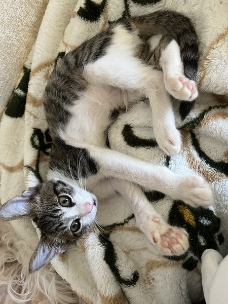 | 特徴(性格など) | シロキジの女の子。とても元気でちょっとビビり。慣れると他の猫ちゃんやわんちゃんとも仲良くできます。 1人遊びが上手で、ずーっと1人で遊んでいます。長いお留守番も大丈夫そうです。 |
