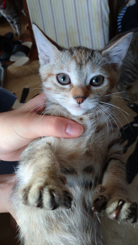 | 特徴(性格など) | キジトラ、虎模様薄め。 ドライフード食べれるようになりました。 お水も良く飲みます。 |