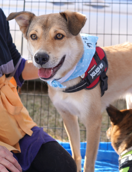 | 特徴(性格など) | 初めましての人には最初は警戒して吠えますが、天真爛漫な性格です。 おやつやごはんが好きなので比較的慣れやすく、すぐに甘えん坊になります。 預かりさん家族をストーカーしています。 根っこはデレデレな性格かもしれません。 ナデナデしてほしい時は手で"なでなでして"と催促してきます。 撫でられるとふやけた表情を見せてくれます。 お散歩は好きですが、自転車や突然の出来事でびっくりして吠えてしまうことがあるので、練習中です。 現在、預かりボランティアさん宅で、他の犬達との生活の中で犬語・社会性をお勉強中です。 体重:18kg フィラリア陰性 去勢・マイクロチップ済 ワクチン済 |