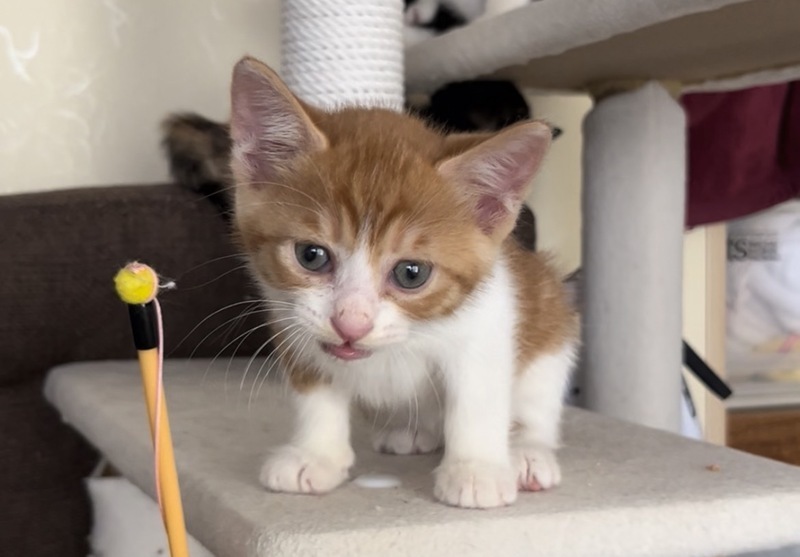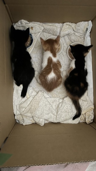 | 特徴(性格など) | 茶白の男の子です。 3兄妹の中で1番大きく元気一杯です。 ご飯ももりもり食べて、兄妹で 楽しそうに遊んでいるようです。 |