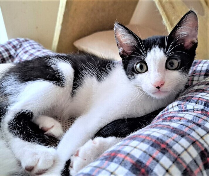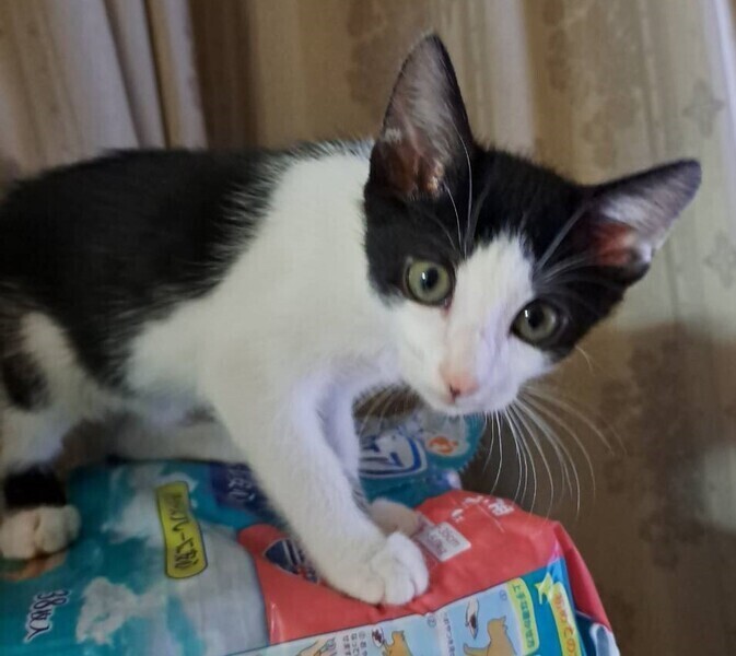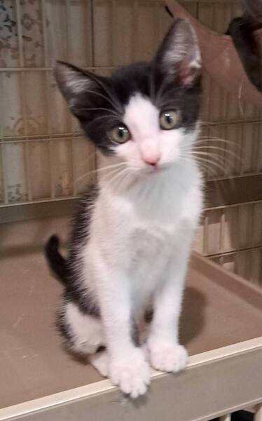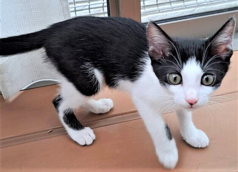 | 特徴(性格など) | 仮名: しゅうとくん【オス) 毛色: 黒白八割れ 性格: 3兄妹の中で一番怖がりです。 遊ぶ事が大好きで、預かり宅の成猫の尻尾で遊んでいますので、猫との付き合いは出来ています。 先住猫さんがいても大丈夫だと思います。 食べる事が大好きで元気一杯の男の子です。 兄弟の誰かと一緒だと嬉しいですが、別々でも構いません。 検便済 駆虫済 ワクチン済 猫エイズ・白血病ウィルス検査は陰性です |