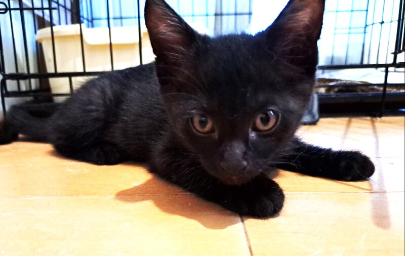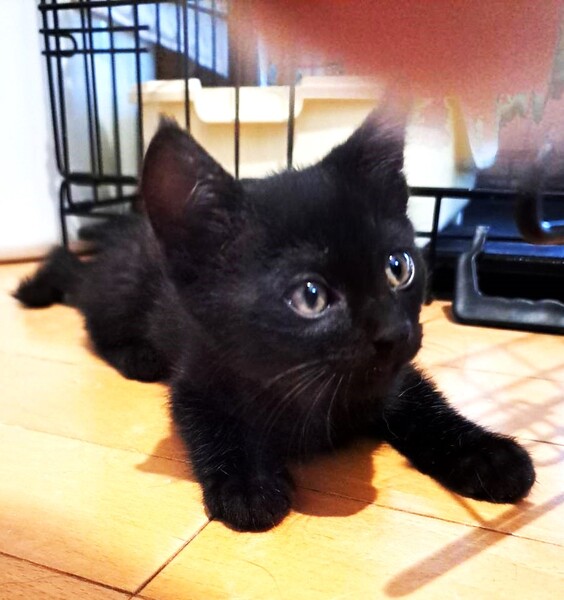| 特徴(性格など) | 仮名: げんきくん(オス) 毛色: 黒猫 性格: 3兄妹の中で一番懐っこいです。 穏やかな性格ですが、猫じゃらしとご飯だけは誰にも譲らない強気に出ます。 保護当時は一番弱っていて心配しましたが、名前のとおり、今では元気な子に成長しました。 兄弟の誰かと一緒だとうれしいですが、別々でも構いません。 検便済 駆虫済 ワクチン済 猫エイズ・白血病ウィルス検査は陰性です |
