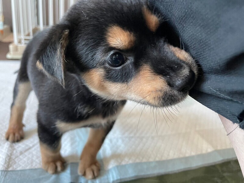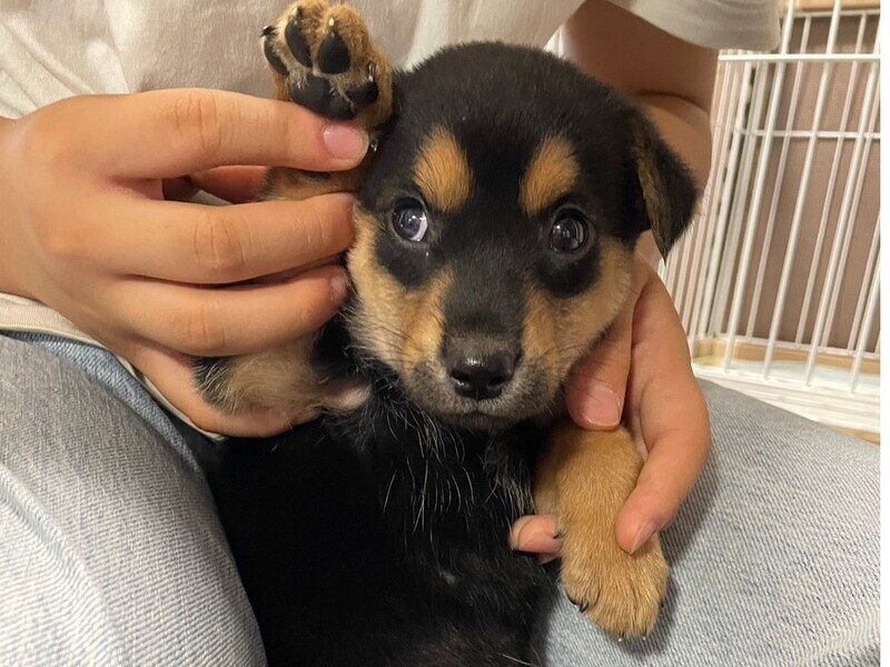 | 特徴(性格など) | 【仮名】みほこ 【生年月日】推定2023年8月1日頃生まれ 【種類】MIX 【成犬時サイズ】中型犬(13-20kg前後) 【毛色】ブラックタン 【性別】メス 【避妊】適正時期になり次第飼い主さまで必ずお願い致します。 【混合ワクチン】生後2か月頃接種予定 【駆虫】1回目済み 【健康状態】良好 【性格】 愛嬌があってとても可愛い子です。 元気いっぱいでたくさん遊んで、コテっと寝てしまう仔犬らしい子です(^^) 人大好き、先住犬には少し戸惑いながらでも自分から近付いて遊ぼうとして居ます。 【トイレ】 まだ失敗もするけど、シートで出来る回数が増えて来ました。 まだまだ小さい仔犬なので訓練続けていきます。 【ケージ】 就寝時やお留守番の時に利用しています。 鳴くこともありますがそのうち諦めて寝ています。 5時間程度のお留守番はいたずらせずにできてます。 |