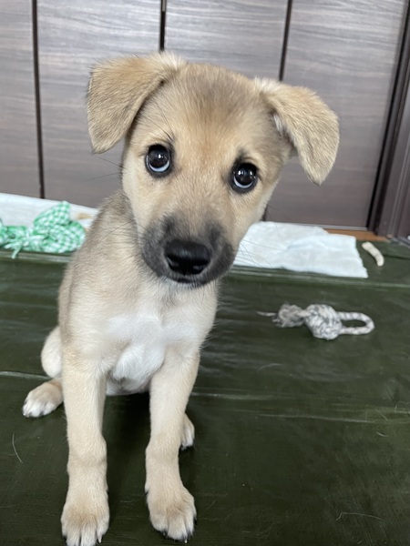 | 特徴(性格など) | 【仮名】きよ 【生年月日】推定2023年8月1日頃生まれ 【種類】MIX 【成犬時サイズ】中型犬(13-20kg前後) 【毛色】フォーン&ホワイト 【性別】メス 【避妊】適正時期になり次第飼い主さまで必ずお願い致します。 【混合ワクチン】 10/1、1回目接種 【駆虫】 2回 【健康状態】良好 【性格】 とにかく甘えっ子で抱っこ大好きです。 子供、先住犬にも懐いて遊んでいます。 私達や先住犬に注意されるとすぐお腹を見せてごめんなさいアピールをしています‼︎ 今はカミカミ、イタズラする事もありますが仔犬らしい行動かと思います‼︎ 【トイレ】 100%です。 【ゲージ】 就寝時、お留守番はゲージです。 最初は鳴きますが諦めて落ち着きます。 現在お留守番は5〜6時間しています。 |
