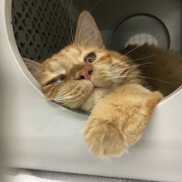 | 特徴(性格など) | 茶トラの長毛で、右目が保護当初から癒着して見えません。 明るい性格で他の犬猫にもフレンドリーです。人に対しては少し臆病ですがすぐなれると思います。 |