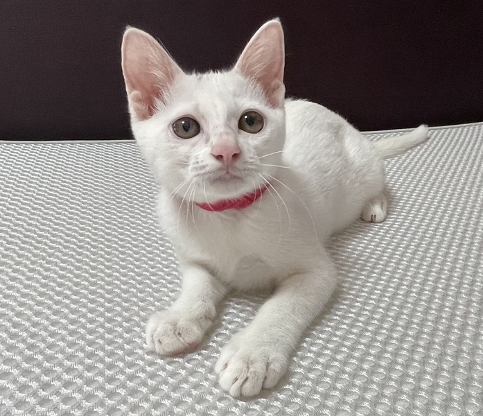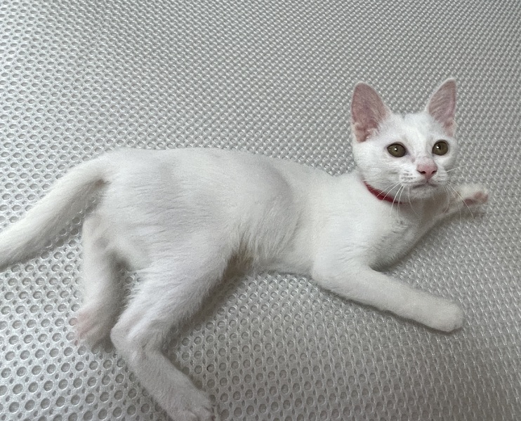 | 特徴(性格など) | 保護時は生後2か月を過ぎており野性味あふれていましたが、現在はよく遊び、甘えてくる子に育ってきました。頭のてっぺんに少し黒い毛がありますが、白猫によくあるキャットニップで自然に消えてくると思います。しっぽは長くまっすぐでスレンダーな美猫さんです。大人の飼い猫にもよくなれていますので、先住猫のお見えのお宅でも大丈夫だと思います。 保護当時猫風邪で右目がふさがっていましたが、現在は回復してきれいです。 エイズ、白血病ウイルス検査は陰性で、ノミダニお腹の虫は苦衷済みです。 3種混合ワクチン2回接種済み、マイクロチップ装着済みです。 健康状態は全く問題なしで、元気いっぱいです。本日の体重は1.5kgです。 近況や そのほかの里親募集中の猫たちは 「サクラねこ名古屋」のブログで毎日御紹介させていただいております。 http://sakuranekonagoya.jp/ 9月10日の名古屋市獣医師会館での里親会に午前の部で参加予定です。 詳細はホームページでご確認ください。 http://sakuranekonagoya.jp/ |