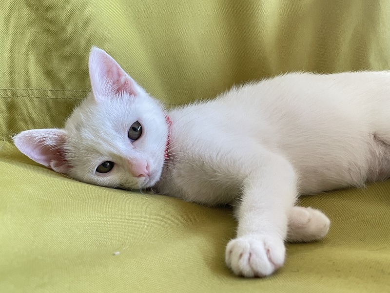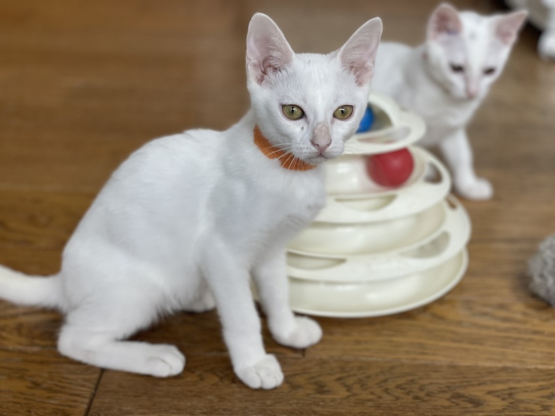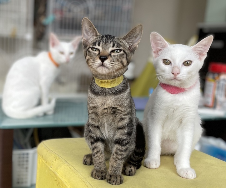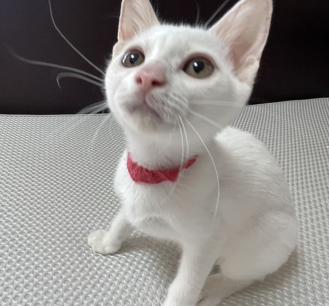 | 里親募集する理由 | 大きなマンションの駐輪場で保護しました。白、白、白、キジトラの4姉妹と母猫で暮らしていたようです。交通量も多いし飲食店も近く危険な為、子猫を4匹とも保護し、母猫はTNRしました。 | ||