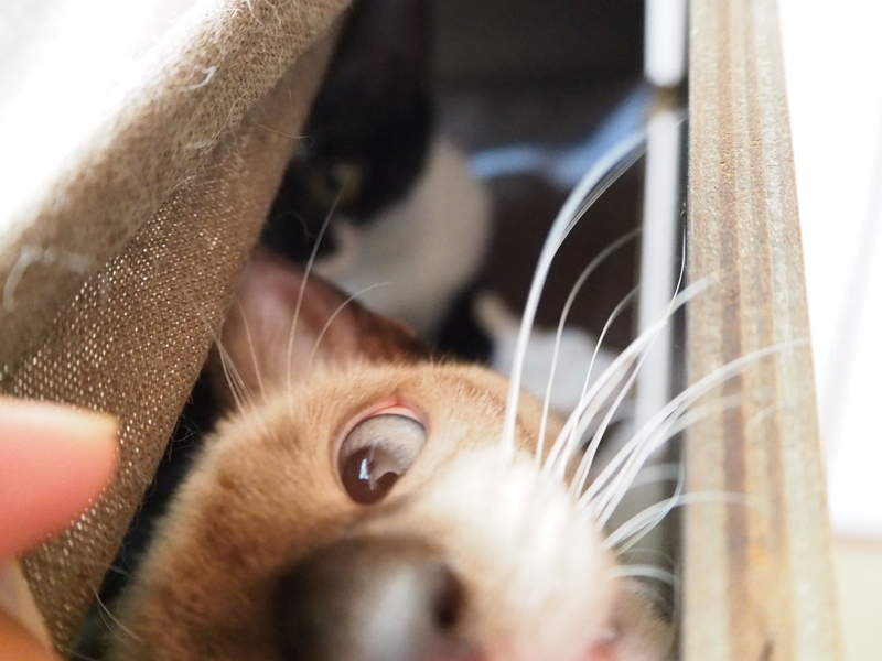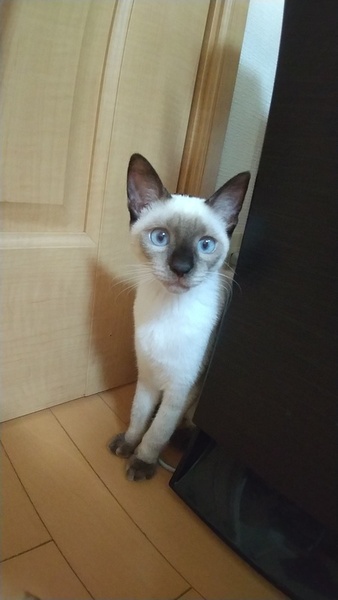 | 特徴(性格など) | シャム柄で青色の瞳をしています。 スラッとした細長いオリエンタル系の血縁がありそうな体型です。 保護当初から人に慣れていて、初対面の人でもベタベタに甘えたり、遊んだりします。 1人で遊ぶのも、姉妹猫のぐりと遊ぶのも大好きで、いつも姉妹で運動会をしています。 人間は、大人は誰でも初対面から甘えますが、子供はまだ近付かれると逃げます。 預かり宅に先住の犬猫がおりますが、最初は少し慎重派で少し遠くから様子を伺っていましたが、慣れると気にせず近付いたり遊びに誘うようになりました。 |
