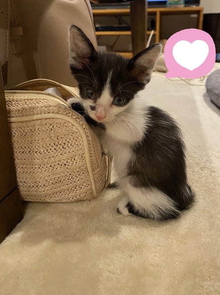 | 特徴(性格など) | 白黒のハチワレ女の子です。 生後1ヶ月半前後です。 とても細く小さい子です 350g 小さいながらにやんちゃで元気に遊びまわり 甘え上手な可愛い子です。 健康状態は良好 |