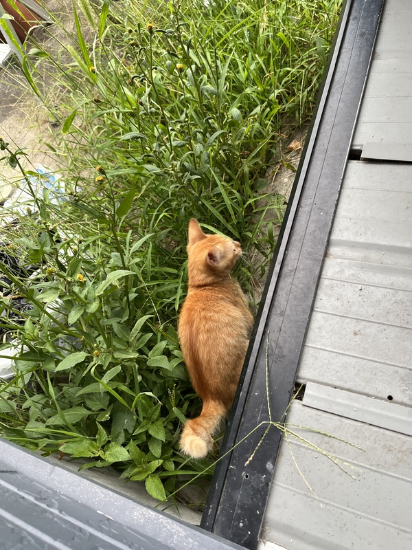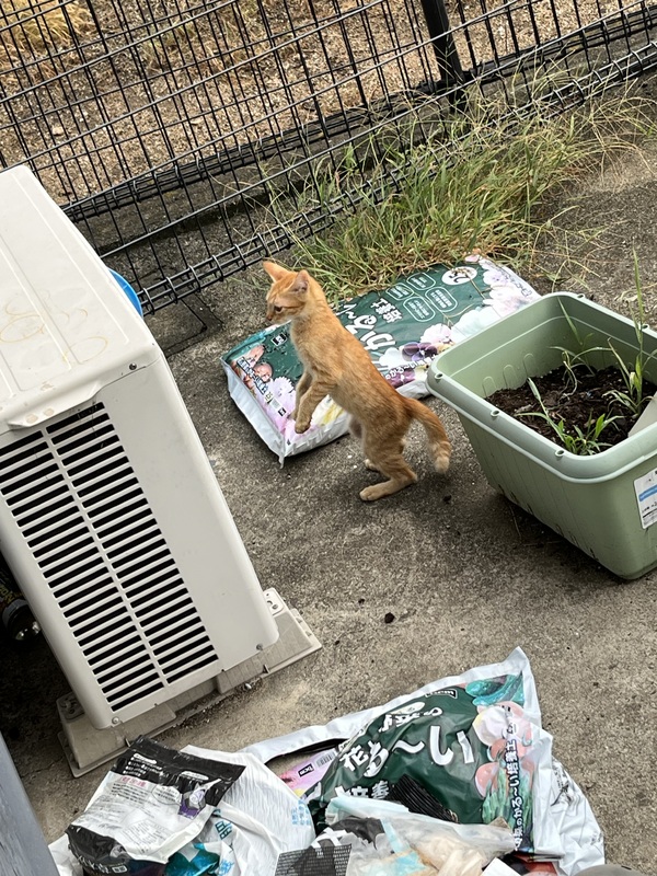 | 特徴(性格など) | 全身茶トラで、かぎしっぽです。 まだ人には慣れてないですが、徐々に距離は近くなってきています。 |