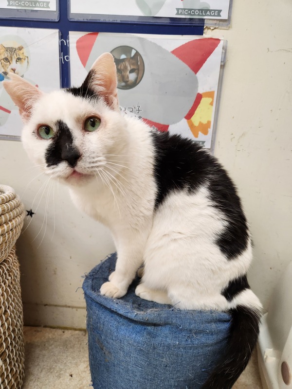 | 特徴(性格など) | お顔の斑柄が逆ハート♡ ボディも見る角度によってはハートマークが! とっても懐っこいビッグボディな男の子です(^^) お声も高めの可愛らしいタイプでニャーと甘えてくれたりお腹も見せてナデナデさせてくれます(^^)! 最近では抱っこの気分になると、抱っこして~と言いにくるようにもなりました! 過酷な環境下からの生き残り。 どうか余生は穏やかに幸せに過ごしてほしいです。 健康状態 元気、食欲、うんち、おしっこ問題ありません。 初期医療済み(以下内容) 全身血液検査 異常なし 混合ワクチン 済み エイズ/白血病 陰性 ノミダニ・お腹の虫下し 済み 不妊手術 済み |