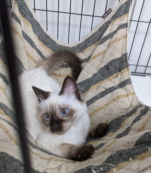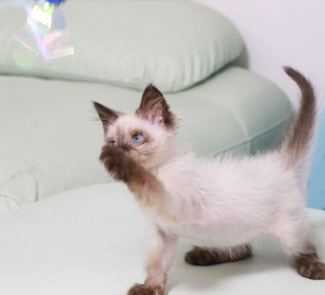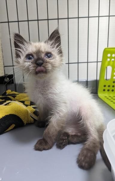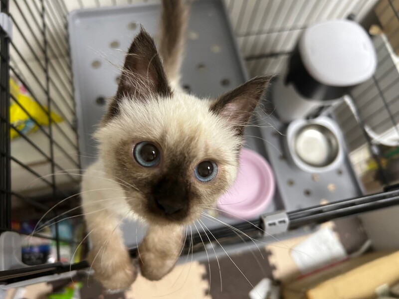 | 特徴(性格など) | 元気いっぱい! 好奇心旺盛! 遊び大好き! …なシャム柄子猫のすぴかちゃんです。 0歳のまだまだ小さな女の子(推定2023年5月生まれ)になります。 撫でるとゴロゴロ喉を鳴らしてくれて、頭をすり付けてきてくれます。 1.5ヶ月で保護してるということもあり、人馴れは大丈夫ですが、猫慣れは未知数です。 なでなで、抱っこ、爪切り、ブラッシング、シャンプーなど、一通りのコミュニケーションやケアはできます。 ※子猫なので育て方や成長次第で性格やコミュニケーションの仕方が変わる可能性は十分にあります。 子猫時期は可愛い反面でヤンチャでお世話の手間もかかるので、なるべく時間にゆとりがある方にお勧めします。 |