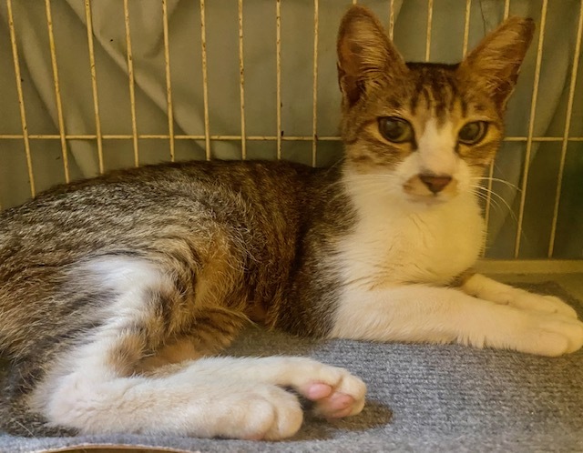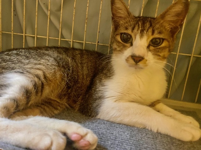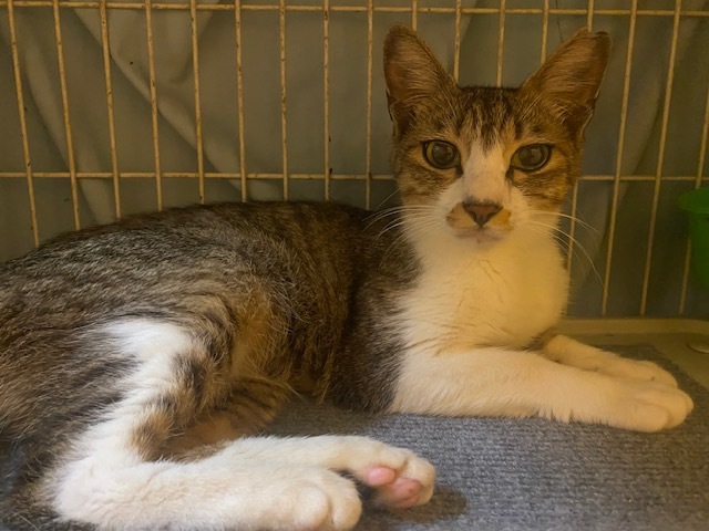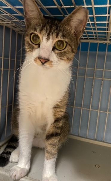 | 特徴(性格など) | キジ白でしっぽが長く、きれいな女の子です。 まだやや警戒心がありますが、少しずつ慣れてきているところです。 |