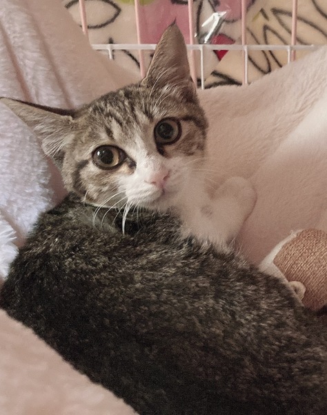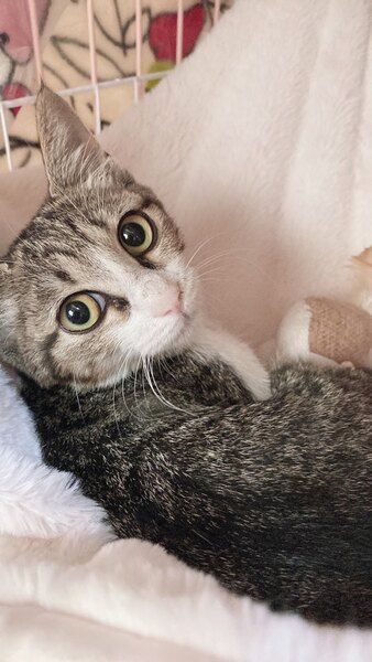 | 特徴(性格など) | 大きな瞳がとっても可愛いキジ白の女の子です。 最初は緊張していたようですが、 すぐにトイレも爪とぎも覚えてくれました。 他の保護猫ちゃん達にも 自分からそっと近づいて 仲良くなっていきました。 女の子らしく控えめですが みんながオモチャで遊んでいると すぐに飛んできて一緒に楽しんでいます。 猫ちゃんが大好きで 誰かが眠っているそばで 喉を鳴らして寄り添う姿は まさに“福ねこちゃん”です!! ☆できれば先住猫ちゃんのいるご家庭に 譲渡を希望しております☆ |