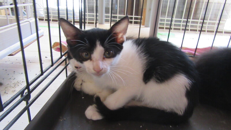 | 特徴(性格など) | こちらの子はハチワレの女の子です。 まだ完全に人に慣れてはいませんが触る事は出来ます。 トイレの躾出来ています。 血液検査の結果は、すべて陰性でした。 ①~⑥まで募集しています。 |