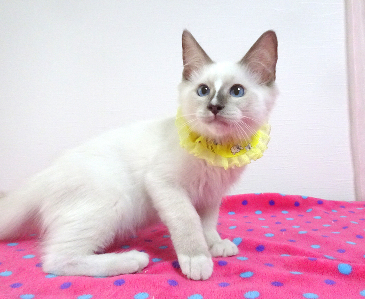 | 特徴(性格など) | 【猫の仮名】 ラピくん (担当 松嶋) 【毛色・柄】 ラグドール・ミテッド、青い目、長毛系、長いシッポ 【動 画】後で掲載 家猫の母猫の元で育ったので栄養状態が良く、きれいな子です♪ 顔立ちはクールでも、性格はおだやかで、猫を飼うのが初めての方でも大丈夫です♪ 健康状態良好 ●ウイルス検査(エイズ・白血病)陰性 ●ワクチン 1回 ●蚤取り 1回 ●駆虫 2回 ●検便 2回 ●シャンプー 2回 走っても大丈夫な広さのペット可のお住まいで、猫だけのお留守番が長時間でないご家族を募集しています。 ご高齢の方は後継者のおられる方を希望いたします。 |