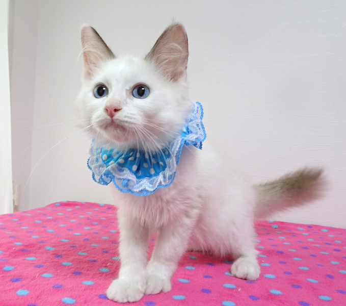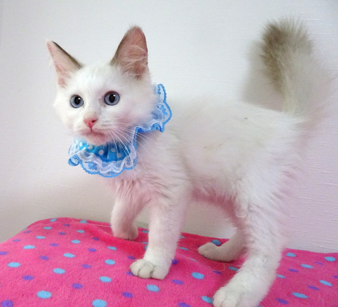 | 特徴(性格など) | 【猫の仮名】 ココくん (担当 松嶋) 【毛色・柄】 ラグドール・バイカラー、青い目、長毛系、長いシッポ 【動 画】後で掲載 家猫の母猫の元で育ったので栄養状態が良く、きれいな子です♪ 顔立ちはクールでも、性格はおだやかで、猫を飼うのが初めての方でも大丈夫です♪ 健康状態良好 ●ウイルス検査(エイズ・白血病)陰性 ●ワクチン 1回 ●蚤取り 1回 ●駆虫 2回 ●検便 2回 ●シャンプー 2回 走っても大丈夫な広さのペット可のお住まいで、猫だけのお留守番が長時間でないご家族を募集しています。 ご高齢の方は後継者のおられる方を希望いたします。 |