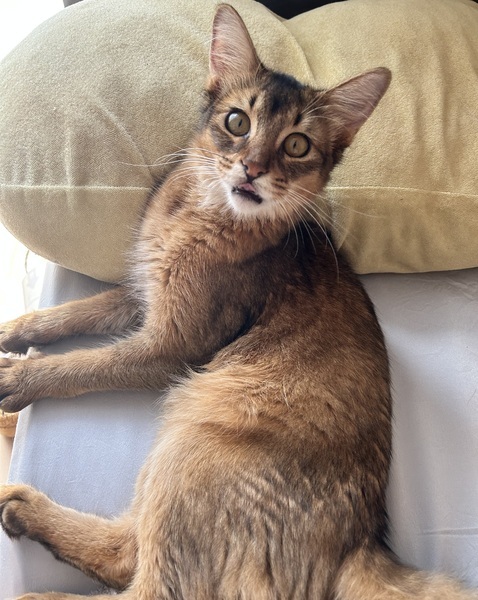 | 特徴(性格など) | 猫種:ソマリ 柄:ルディ 年齢:生後半年 性格:とても甘えん坊。ずっとゴロゴロフミフミします。 健康状態:いたって健康です。 ※遺伝子検査結果でピルビン酸キナーゼ欠損症がアフェクテッドです、ご承知おきください |