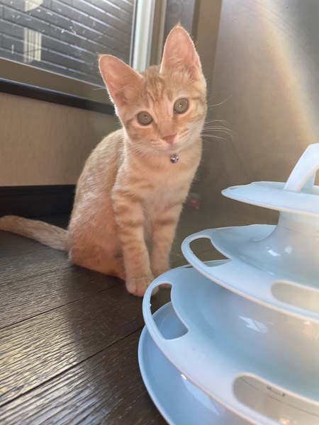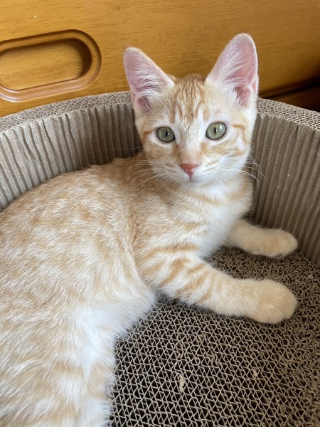 | 特徴(性格など) | 猫の特徴・性別 ①茶トラ メス 仮名:レンちゃん ②キジ白 オス 仮名:ソウくん ●猫の年齢 生後4ヶ月位 ●性格・特徴: レンちゃん:人懐っこく、おとなしめの女の子一人遊びが上手です。 ソウくん:すごく甘えん坊で、ゴロゴロのどを鳴らしながらふみふみします。 食欲旺盛な元気な男の子です。 |
