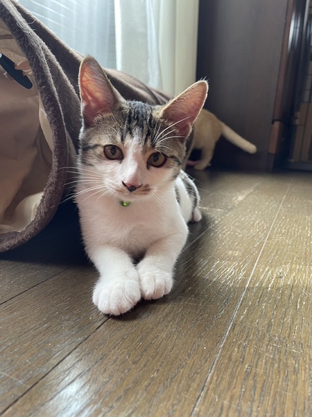 | 里親募集する理由 | ●保護した時の様子: 多頭飼育の現場で5月初旬に2匹のメス猫が出産し、生後1ヶ月ほどたって連れてきた子猫2匹を里親さんを探すために保護しました。 |