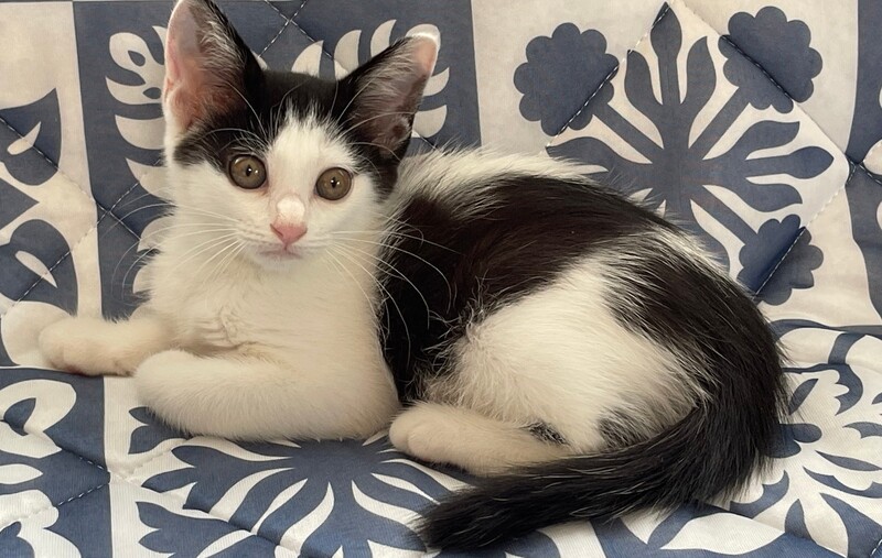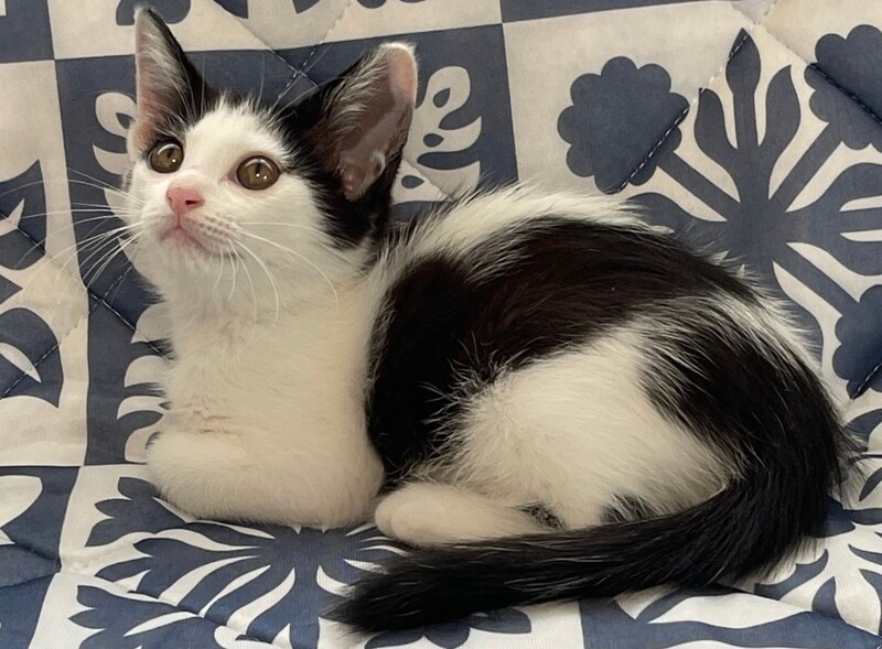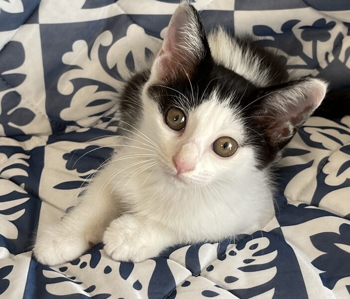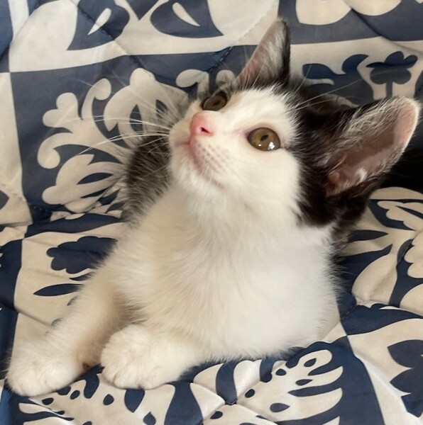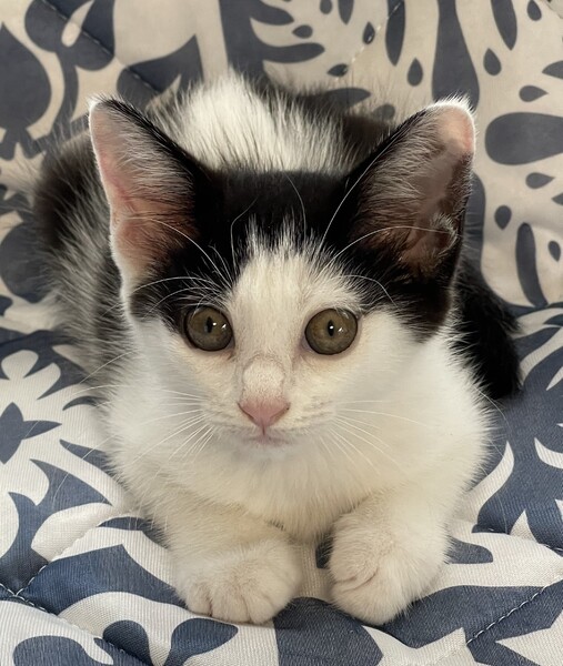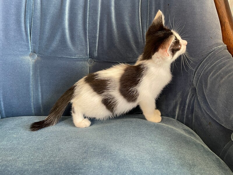 | 特徴(性格など) | 白黒、オンザ眉毛、尻尾真っ直ぐ。 お尻フリフリ、斜め横っ飛び、遊び大好き。 人が大好きなひと月半くらい(病院曰く)仔猫です。 |