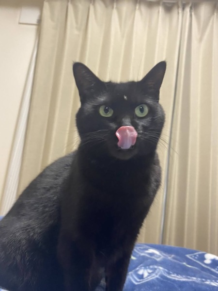 | 特徴(性格など) | 【特徴】 雑種、短毛 毛色:黒(お腹の一部分だけ白) 目の色:緑 【性格】 寂しがり屋の甘えん坊です。 人懐っこく足に擦り寄ってきてゴロゴロと喉を鳴らしてくれます。 膝の上に乗るのが大好きです。 大きな音が苦手で、雷がなるとテレビの裏や棚の下に隠れてしまう少し臆病な面もあります。 9歳ですが、まだまだ元気でキャットタワーを登ったり、走ったりしています。ご飯もたくさん食べ、排泄も上手にすることができます。 病院で一通り検査をして採血や心臓の検査でも異常はありませんでした。 飼い主の都合で手放さなければならなくなり心苦しい限りですが、大切に育ててくださる方に引き取っていただければと思っています。 よろしくお願い致します。 |