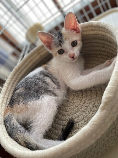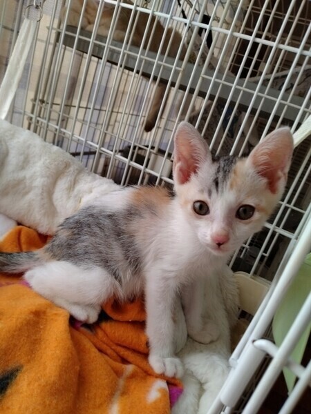 | 特徴(性格など) | 淡いパステルの三毛猫ちゃん 仮の名を「ミモ」と名付けました。 まだ離乳直後の赤ちゃんです。 壮絶な多頭崩壊現場からレスキューしました。 かなりの栄養失調状態でしたが、保護後はしっかりご飯も食べれています。 おもちゃを見せると元気に飛びついてきて 撫でると気持ち良さそうにゴロゴロします。^^ 憂を帯びた可愛いミモちゃんの ずっとの家族になってあげてください。 宜しくお願いいたします。 |