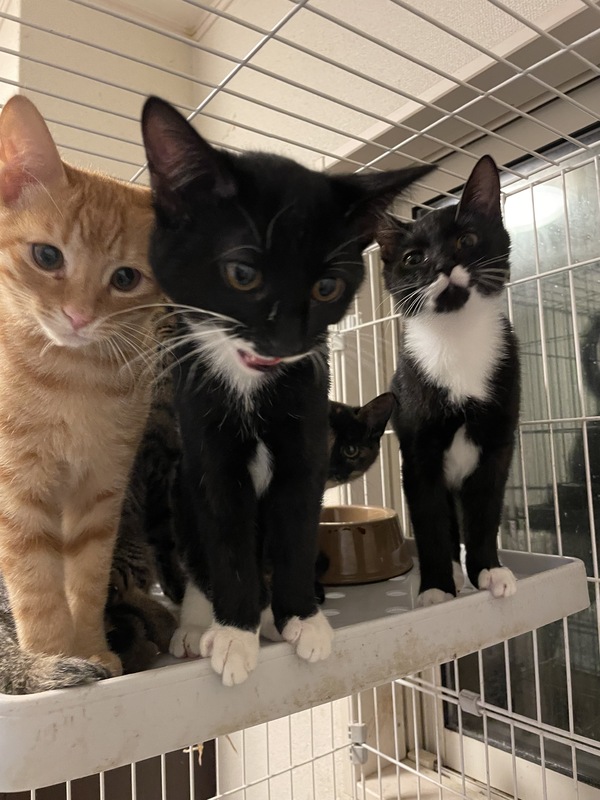| 特徴(性格など) | 茶トラのオス2匹 靴下・ハチワレのオス2匹 サビのメス1匹 エサもよく食べすごく元気に遊んでいます! |