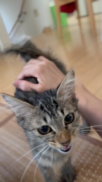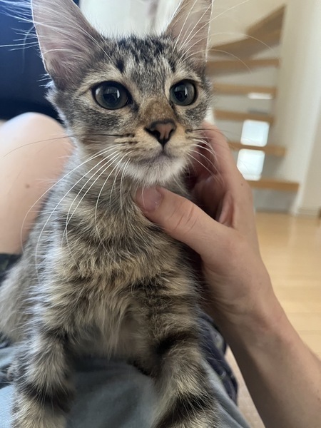 | 特徴(性格など) | 名前:くるみ 性別:女の子 年齢:推定3ヶ月 ※9/3現在 体重:1.8kg ※9/3現在 医療ケア:3種ワクチン・駆虫済 エイズ白血病:陰性 お外で衰弱していたところを保護。 現在は元気になりました。 兄妹と2匹でよく遊んでいます。 お兄ちゃんより少しシャイですが自分から寄ってきて撫でてあげるとゴロゴロいいます。 追いかけると逃げます。寄ってくるまで待つのがポイント。 兄妹で引取ってくださると嬉しいです。 |