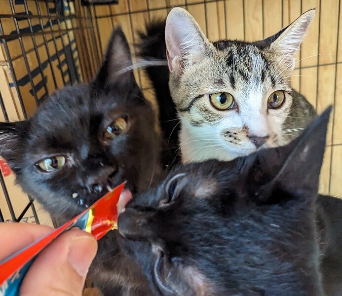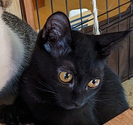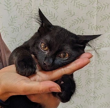 | 特徴(性格など) | 体調:元気で、食欲もあり、排泄も良好です。 性別:オス 色:クロ 年齢:約3ヵ月 体重:2Kg程度 ・血液検査済み(猫白血病・エイズ、どちらも陰性) ・3種混合ワクチン接種済み(2023/07/22) ・ノミダニ投薬済み ・駆虫済み 穏やかな性格で元気もあります。抱っこするとゴロゴロご機嫌になります。 |