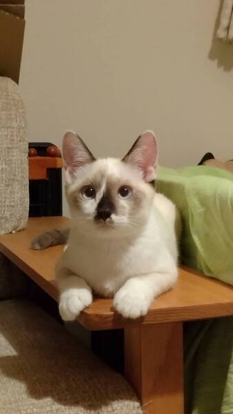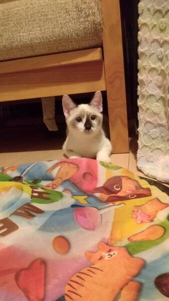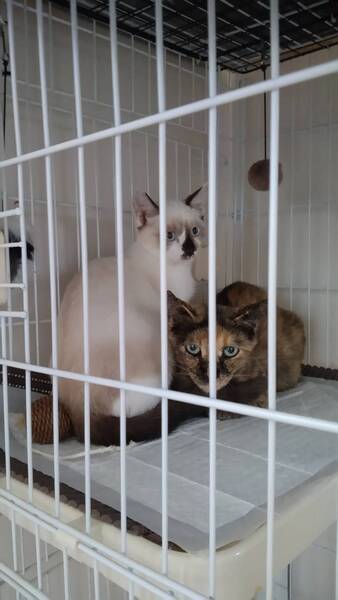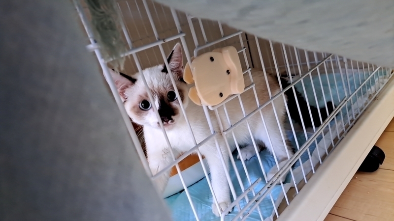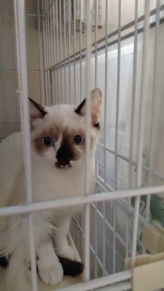 | 特徴(性格など) | 食欲旺盛、元気なシャム系の女の子です。 保護したばかりなのでまだまだ警戒心が強いですが、洗濯ネットに入れると大人しく抱っこやシャンプーをさせてくれます。現在人慣れ訓練中です。 猫エイズ・猫白血病検査、陰性。 |