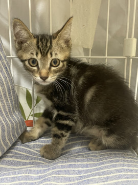 | 特徴(性格など) | 仮名:ココア 性別:オス 年齢:3~4ヶ月程度 体重:1000g(9/10現在) 毛色:キジトラ・黒多め。しっぽは真っすぐですが触ると先っぽが小さな団子みたいです。 性格:好奇心旺盛。強気。 病歴:なし その他:トイレトレーニング済み 健康状態は良好です。 食欲も旺盛です。カリカリも食べられます。 マイフリーガードα済。プロフェンダー済。 三種ワクチン1回目は9/10に済。 10/14に不妊手術をしに行きます。 ワクチン2回目もその際に一緒に行う予定です。 ※①と③の子猫と兄弟です。 |