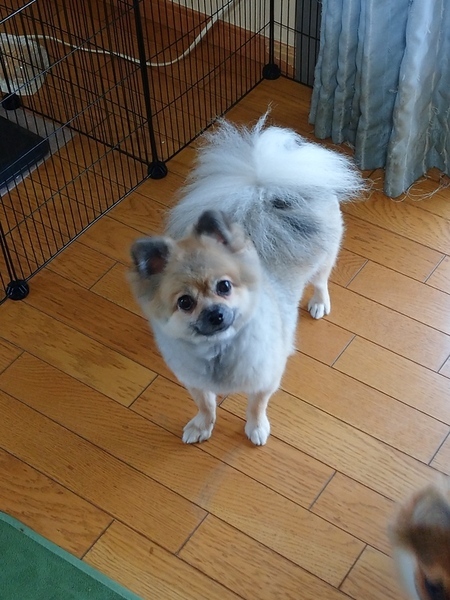 | 特徴(性格など) | オレンジセーブル 体重4.9kg 人に対してはかまってちゃんになりますが、犬同士で遊ぶことはあまりありません。 無駄鳴きは全く無く、唯一吠えるのはご飯・おやつ・来客で興奮した時だけです。 毛が伸びると黒っぽくなり、トリミング後は薄いグレー色になります。 ほとんど寝てることが多い子です。 我が家で緊急保護し獣医で検査した際、すでにパテラG1~2の状態でした。(生活に支障ありません) 血統書を確認してから引き取ってます。 |