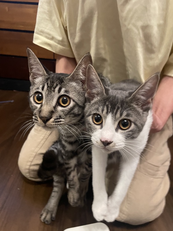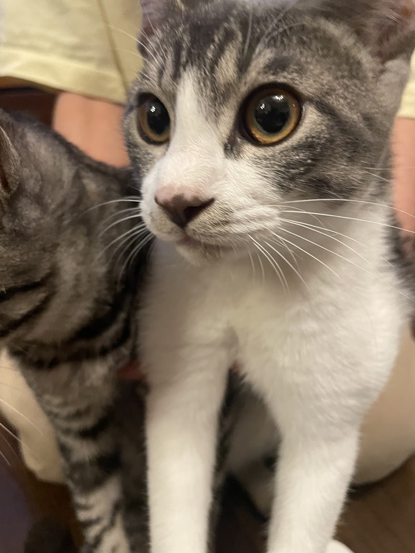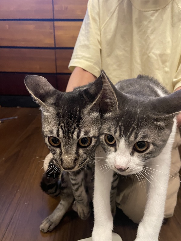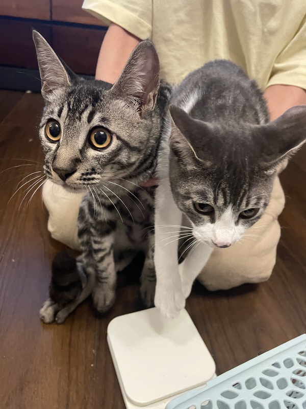 | 特徴(性格など) | 手足白の女の子❤️結構ヤンチャ 虎柄の男の子❤️とても元気 2匹でいると^_^じゃれてばかりです。 体格的には、スマートな猫ちゃん 耳はとても、大きく、空飛べそう‼️ |